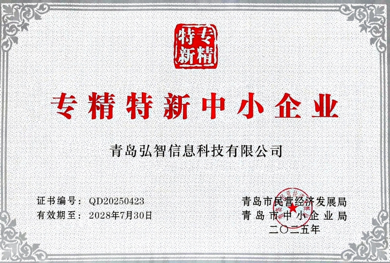 08-21 青島弘智信息科技有限公司再度榮膺"專精特新中小企業"稱號——以創新驅動發展,以專業鑄就卓越